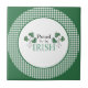 Un mosaico cerámico, con hojas verdes de Shamrock y 'Orgulloso de ser irlandés' en guiones celtas, en un fondo blanco con un borde de Check Gingham. Este diseño, que forma parte de la colección "Shamrock" de Posh & Painterly, se puede adaptar a cualquier baldosa. (Añadir un marco de madera para usar como Trivet.)