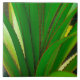 La planta tropical, en la fotografía original de ZoeSPEAK en este gran mosaico cerámico, se llama pino de rosca. No es un pino. Es un pariente lejano de las palmeras, llamado "pino rosado" por la forma espiral en que crece, y por la forma en que los frutos parecen piñas o conos de pino al convertirse en un color rojizo. Las hojas verdes, largas y con manchas, tienen un borde rojizo que se puntea como una hoja de sierra.