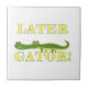 ¡Un cocodrilo verde lindo con el texto amarillo que lee cocodrilo posterior! Camisetas posteriores del cocodrilo, bolsos, tazas, imanes, llaveros, recuerdos, tarjetas, pegatinas, botones, almohadas, y mucho más.