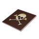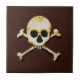 Esta baldosa de cerámica tiene un diseño de cráneo y huesos cruzados.