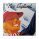 Imagen detallada de un poster de viajes vintage que promueve deportes de invierno en Nueva Inglaterra, EE.UU.