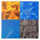 Composición de cuatro elementos mágicos: Fuego, Agua, Aire y Tierra. El quinto es, de hecho, el propietario del producto.