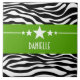 El moderno y moderno Sassy Star Zebra Tile presenta un fondo de moda de cebra en blanco y negro y un atrevido borde verde de chartreuse adornado con un divertido motivo estrella. Este diseño ondulado puede ser personalizado con el texto personalizado de su elección. Haga clic en "Personalizar" para encontrar más opciones de personalización.