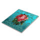 AZULEJO DE CERÁMICA FLORAL ROSA ROSA SOBRE DAMASCO