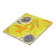 Diseño vintage con flores azules sobre un fondo amarillo brillante