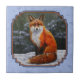 Azulejo De Cerámica Fox roja en azul de nieve invernal