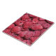 Una pila de raspas de frambuesa raspadillas rojas. Vista de cierre. La frambuesa simboliza el amor, la paciencia, la protección y la fertilidad. Regalos para todos. Productos de formato cuadrado y recuerdos.