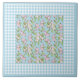 Azulejo De Cerámica Gingham azul blanco, flores de manzana rosada en a
