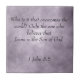 Esta baldosa de cerámica muestra una escritura sobre Jesús en negro con un fondo gris asombroso. "¿Quién es el que vence al mundo? Sólo el que cree que Jesús es el Hijo de Dios." 1 Juan 5:5. Derechos reservados © 2016 Rhonda Jones