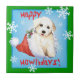 Celebra la temporada de fiestas con un lindo cachorro de Bichon Frise sentado en un sombrero de Santa en medio de copos de nieve y las palabras, ¡Feliz Amanecer! Gran idea de regalo de vacaciones para la familia y amigos amantes de Bichon.