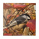 Azulejo De Cerámica Hojas de otoño rosadas con el pájaro del Chickadee