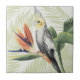Azulejo De Cerámica Hojas de palma con pájaro negro