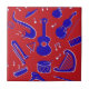Este diseño es una mezcla de diferentes instrumentos musicales en azul y blanco con un fondo rojo. Esta imagen está disponible en una variedad de otros productos, sólo tienes que hacer clic en el enlace debajo de la foto cerca de 'Acerca de este diseño'.