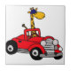 Azulejo De Cerámica Jirafa enrrollada que conduce el convertible rojo