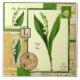Este trivet/teja de cerámica botánicos es diseñado por el © 2011 de Beck Pittman. Éste exhibe el lirio del valle la flor del mes para mayo. La compañía 34 ha creado uno para cada mes del año. ¡Comience a recoger uno para los meses que un miembro de su familia celebra un cumpleaños! ¡Son grandes regalos para los amigos también! ¡Intente uno enmarcado o en una caja de regalo!