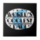 El diseño ovalado y de texto en negro, blanco y azul dice "Papá más frío del mundo" en cajas de sake de papá, baldosas, ornamentos, cuadernos, tazas, bolsas de té, tarjetas, botones, imanes, cadenas de claves y más!