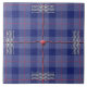 Llamamos al diseño original de HomeWare en este gran mosaico cerámico "Mad Plaid in Blue". El patrón es un manto básico en tonos azul celeste. Sobre este fondo hay dos líneas rojas onduladas, una horizontal y otra vertical, que atraviesan el centro del diseño. Las líneas son tridimensionales, arrojando sombras sobre la plataforma, y hay un botón rojo redondo en el centro, donde las líneas se cruzan. En los extremos de las líneas rojas, en cuatro lados, hay bloques de líneas blancas onduladas y texturadas. También hay líneas de puntos rojos que recorren la parte azul más clara de la manta. Se parece un poco a un paquete, todo sellado y pegado. Así, el nombre "Mad Plaid in Blue".