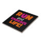 Azulejo De Cerámica Maratón de ejecución de naranja de texto rosado