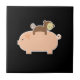 Azulejo De Cerámica Mono del bebé que monta al revés en un cerdo