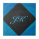 Azulejo De Cerámica Monograma azul oceánico y negro