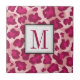 Azulejo De Cerámica Monograma de leopardo rosa y rojo de moda
