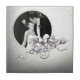 Elegante baldosa de marco adamascado blanco, con un espacio circular para la fotografía boda. Los bonitos gráficos de flores decoran el fondo del marco del círculo. Personalice agregando su foto. Excelente enmarcado para tu pared o como caja de conservas.