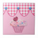 Este pastel de torta rosada Tile incluye un quequito dibujado con el ratón, con un gingham rosa y una franja de corazón azul. ¡Enarcámoslo o háganlo una caja de joyas!