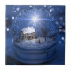 En el interior de un globo de nieve hay un paisaje invernal con una cabaña cubierta de arce y cerezos desnudos. En las ventanas de la casita se queman velas, y en el césped un árbol de Navidad se quema con rojo y oro. Es una noche en Navidad, y las luces de mil estrellas diminutas llenan el globo, con una gran estrella Navidad llenando la noche con sus rayos, mientras las cálidas vigas desde el interior de la cabaña iluminan el paisaje circundante.