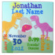 Dinosaurios de T-Rex y recién nacido lindos en teja del nacimiento del muchacho del huevo. Un pequeño dinosaurio lindo de T-Rex en huevo y T-Rex feliz parents la teja del nacimiento con los textos completamente adaptables: Nombre, apellido, hora del nacimiento, fecha de nacimiento, peso y altura. ¡Esta teja hermosa del cuarto de niños es completamente adaptable, añade sus textos e imágenes! Un regalo lindo hermoso de la fiesta de bienvenida al bebé del muchacho de los dinosaurios para los nuevos padres orgullosos.