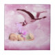 Azulejo De Cerámica Nubes rosadas y cigüeña para una niña