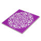 Esta mandala blanca se sienta sobre un fondo violeta brillante. El color es luminoso y creativo. Parte de la colección Kylgh Mandala. Es posible que este diseño no se imprima tan brillante como aparece en línea.