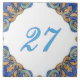 Un diseño del arabesque en azul, verde y amarillo, marcos su número de casa en el estilo de las tejas españolas del azulejo.