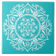 Esta mandala blanca se asienta sobre un fondo turquesa. Los colores son muy tranquilos y relajantes. Parte de la colección Rosenn Mandala.