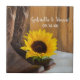 Personalice el encantador Boda de Girasol del País Tile con los nombres personales de la novia y el novio y la fecha de la ceremonia matrimonial para crear un regalo de honor para los recién casados o gracias a los asistentes de novias. Esta moda rústica, informal pero elegante, personalizado y boda presenta una pintoresca fotografía floral de botas de vaquero de cuero marrón y una flor de girasol amarillo con satén blanco y madera marrón.