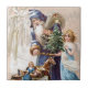 Una teja hermosa del vintage que ofrece Papá Noel con un ángel y un trineo por completo de juguetes.