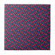 Un ilustracion original de ZoeSPEAK de tres cerezas se ha repetido para hacer el patrón general en este pequeño mosaico cerámico. Las cerezas son un rojo rico y profundo, casi blanco resplandeciente en sus curvas de plumón. Cada cereza tiene un tallo verde curvado, y el fruto se agrupa como colgando del cerezo. El fondo es de un color azul medio y hay pequeños puntos amarillos en filas entre las cerezas. El patrón tiene una nueva apariencia de país. Las baldosas tienen dos tamaños.
