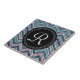 Moda, trendy, y niñita de estilo tribal azteca inspirado en el zigzag en una paleta de colores única y fresca de rosa, turquesa, azul verde azulado, menta y negro. Este patrón de chevron moderno, femenino y fresco presenta una placa de personalizable para su letra inicial de monograma personalizado.