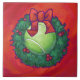Azulejo De Cerámica Pelota de tenis en Wreath sobre rojo