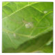 Esta impresionante baldosa muestra una detallada fotografía de una pequeña araña ajardinada sentada en una hoja de brócoli. La criatura diminuta es casi transparente. La fotografía es tan detallada que incluso se pueden ver un par de hebras de la telaraña.