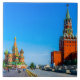Plaza Roja de Moscú en la noche de verano. Muro rojo del Kremlin (derecha), torre de Spassky (salvador) (derecha) y catedral de San Basil (izquierda). El mirador de la era soviética (derecha) para ver desfiles civiles y militares.
