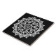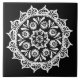 Esta mandala blanca se sienta sobre un fondo negro. Parte de la colección Brosya Mandala.