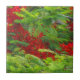 Las hermosas flores de bermellón de la fotografía original de MaeFlowers en esta pequeña tela cerámica están floreciendo en una poinciana real. A este hermoso árbol a veces se le llama un árbol de llama. Sus hojas amarillo-verde son ventiladas y de tipo helecho. La banda de las flores rojas de China se cruza diagonalmente a través de las hojas, que se parecen un poco a plumas. La foto tiene una textura de tela, que le da el aspecto de tapicería, pero en un moderno esquema de color rojo-naranja, amarillo-verde.