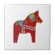 El diseño de esta baldosa es de un caballo rojo de dala tallado y pintado por Julia Persson-Morrill