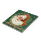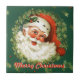 El Retro Santa Ceramic Tile le da un toque de bonito a su decoración. ¡También hace un gran regalo! El diseño retro presenta la cara sonriente de Santa, rodeada por una corona, sobre un fondo verde oscuro. El texto dice: "Feliz Navidad". Personalizar el texto como desee.