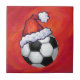 Azulejo De Cerámica Santa Hat Soccer Ball en rojo