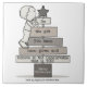 Little Boy se para en un tablero con un martillo en la mano mientras ajusta una estrella en la parte superior del árbol de Navidad de madera que ha construido. La leyenda de cada tablón dice: "¡Sé el regalo que te han dado y crea en lo increíble que es TÚ!" El baúl de abajo dice, "¡Feliz Navidad!" ©Little Boy, Big Dreams, LLC y David A. Carrizales y obras de © Christie Black of Creations from the Heart.