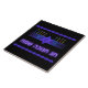 Una imagen fractal púrpura y azul, con un Magen David (Estrella de David), en el medio, como una menorah de Chanukkah. El motivo se repite como un borde superior e inferior. Se han encendido las velas. El texto en hebreo que dice "Chag Chanukkah Sameach" (Feliz Chanukkah) también aparece en un violeta resplandeciente. Todo en un fondo estrellado.
