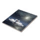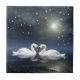 Dos cisnes en una hermosa luna de medianoche y luz de las estrellas con el cuello formando un romántico baldosa cerámica de forma cardíaca
