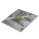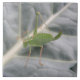 Esta impresionante baldosa muestra una fotografía detallada de una gran hembra de cricket de arbustos verdes sentada en la hoja de una planta de brócoli. La fotografía fue tomada con macrofotografía para mostrar este fascinante insecto y su entorno con el más detalle.