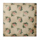 Románticos rosas de cabaña en un fondo neutro suavemente angustiado con remolinos y mariposas grabados en tonos rosa, melocotón, oro y verde.
